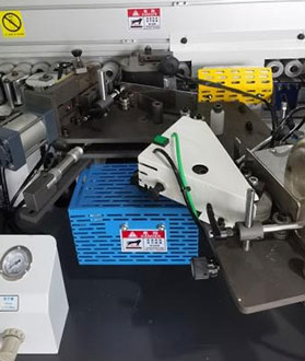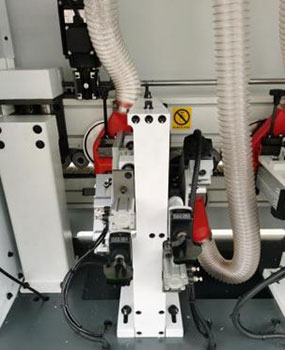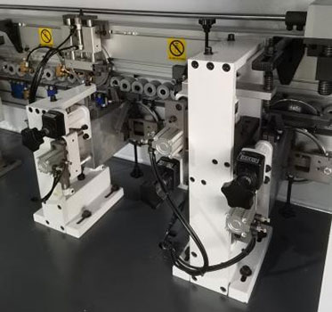 根據(jù)斜邊板材角度設(shè)計(jì),上平刀下跟蹤刀,修至封邊帶緊貼板邊。氣缸進(jìn)退,切換自如。 |