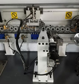 涂膠后經(jīng)過(guò)壓貼輪使封邊帶緊貼板面,壓貼力量可調(diào)節(jié) |