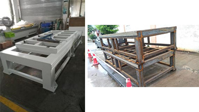 采用方鋼焊接,回火處理,消除焊接應(yīng)力,保證使用多年后不會(huì)變形。床身加強(qiáng)筋比較密集,增加了床身強(qiáng)度,保證底板不變形。 |