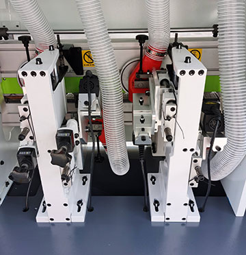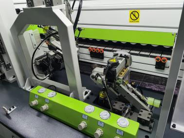 切斷板材兩頭的多余封邊帶(氣缸帶2個(gè)調(diào)壓閥1個(gè)泄壓閥)氣壓更穩(wěn)定,齊頭齊尾更穩(wěn)定. |