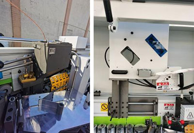 6輪壓貼貼合比4輪更精密,膠線輕微不跑帶,貼合牢靠,厚薄木皮均可輕松走帶,氣缸控制開關(guān)膠門,膠量穩(wěn)定,厚薄均勻。 |