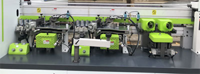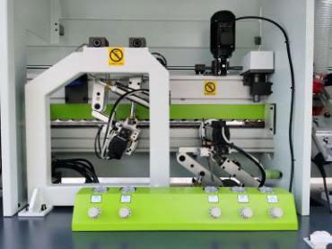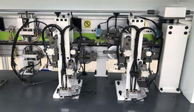 6輪壓貼貼合比4輪更精密,膠線輕微不跑帶,貼合牢靠,厚薄木皮均可輕松走帶,氣缸控制開關(guān)膠門,膠量穩(wěn)定,厚薄均勻。 |