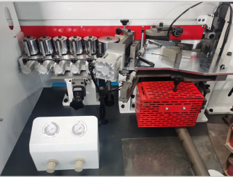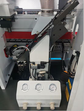 切斷板材兩頭的多余封邊帶(氣缸帶2個(gè)調(diào)壓閥1個(gè)泄壓閥)氣壓更穩(wěn)定,齊頭齊尾更穩(wěn)定 |