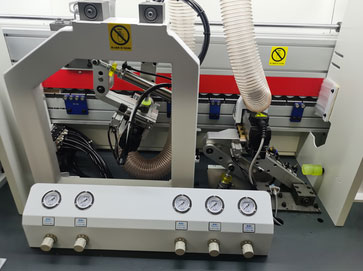 切斷板材兩頭的多余封邊帶(氣缸帶2個調(diào)壓閥1個泄壓閥)氣壓更穩(wěn)定,齊頭齊尾更穩(wěn)定. |
