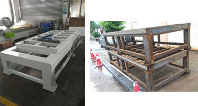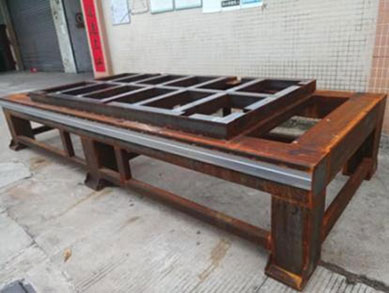 采用方鋼焊接,回火處理,消除焊接應(yīng)力,保證使用多年后不會變形。床身加強(qiáng)筋比較密集,增加了床身強(qiáng)度,保證底板不變形。 |