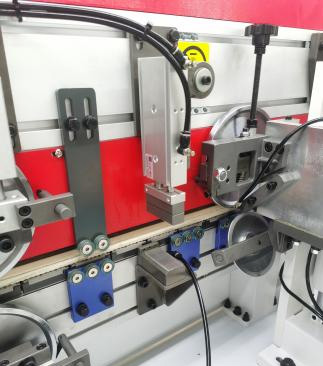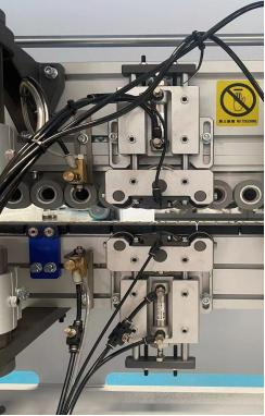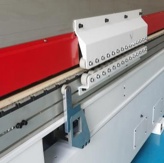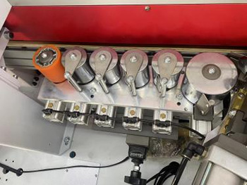 6輪壓貼貼合比4輪更緊密,貼合牢靠,厚薄木皮均可輕松走帶,自帶刮膠功能,使封邊帶緊密貼合板材,最后一個膠輪略帶彈性,壓緊效果更好。 |